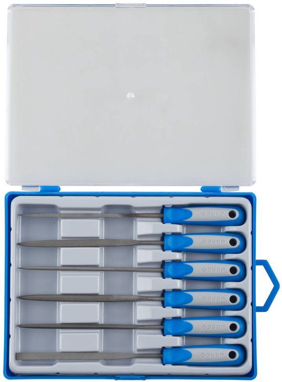 ПроизводителиНабор "ЭКСПЕРТ" Надфили, двухкомп. ручка, насечка 0=драчевая, 100мм, 6шт (16020-0-H6) ЗУБР