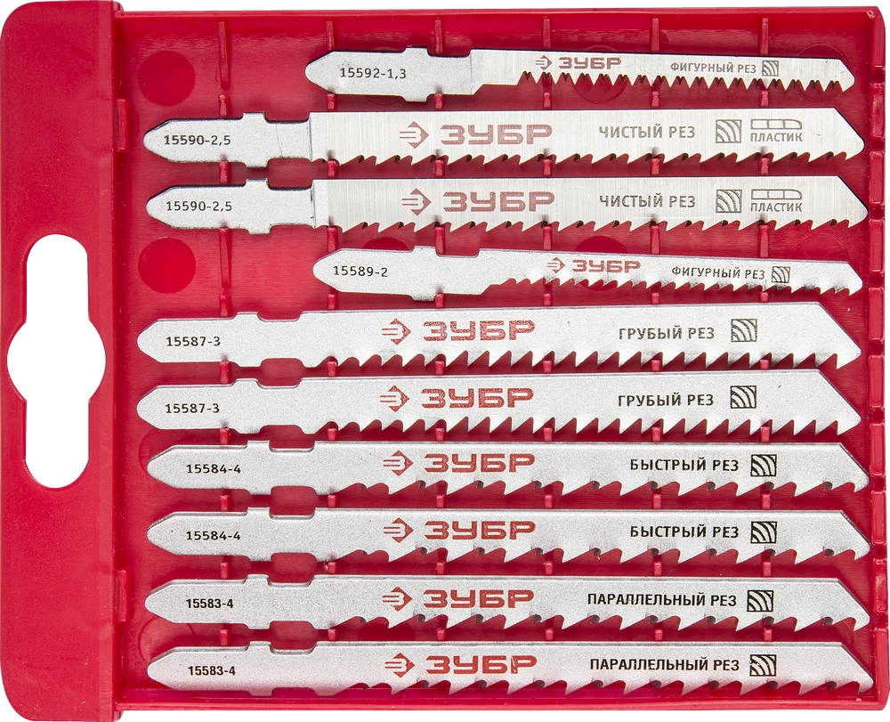 ХарактеристикиАртикул 15580-H10Бренды ЗубрСтрана производства ТайваньТолщина, мм 10Хвостовик Т-образныйКоличество штук в комплекте 10Вес 0.1015Типы полотен в наборе: T144D; T144DP; T111C; T101B; T119BO; T101AO;