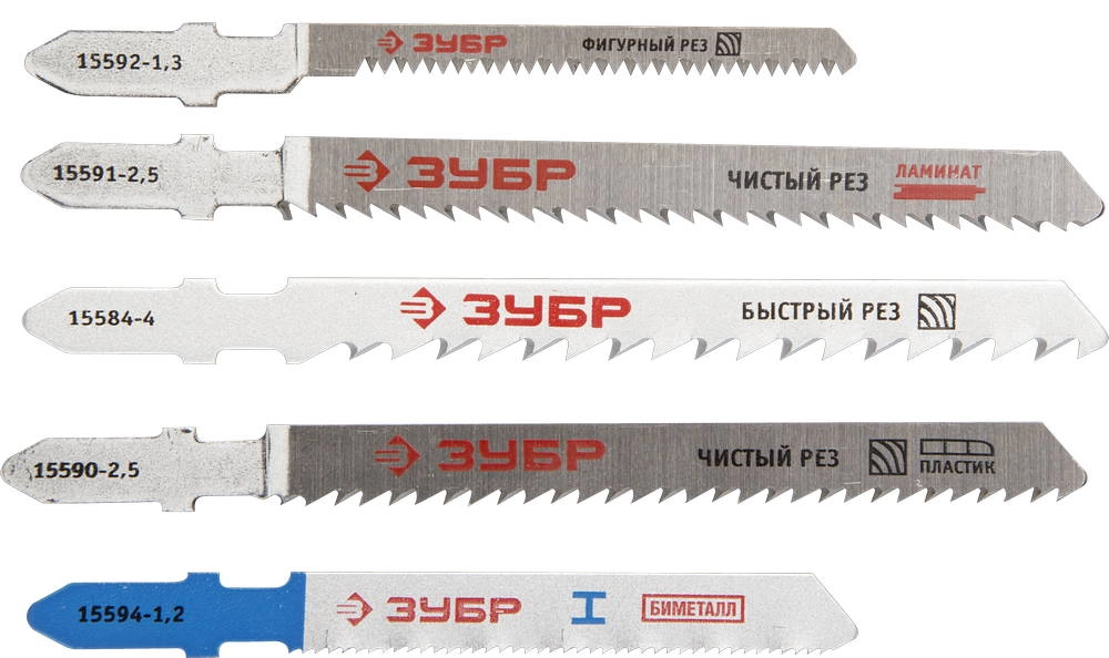 ХарактеристикиАртикул 15580-H5Бренды ЗубрСтрана производства ТайваньТолщина, мм 5Хвостовик Т-образныйКоличество штук в комплекте 5Вес 0.037Типы полотен в наборе: T144D; T101B; T101BR; T101AO; T118AF.