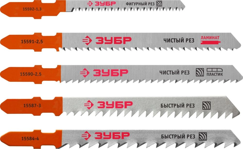 ПроизводителиНабор "ЭКСПЕРТ" Полотна по дереву для эл/лобз, T-хвостовик, 5шт (1595-S5) ЗУБР