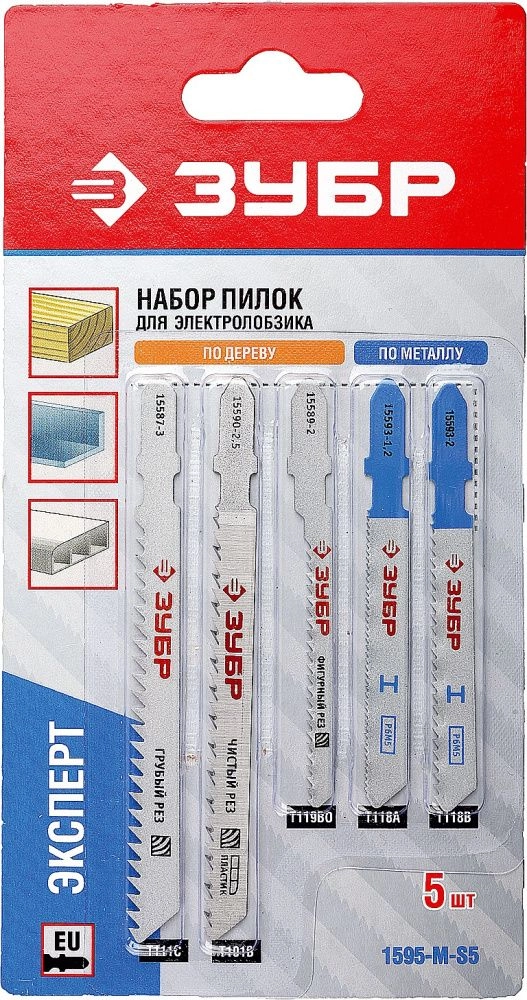 ПроизводителиНабор "ЭКСПЕРТ" Полотна по металлу для эл/лобз, T-хвостовик, 5шт (1595-M-S5) ЗУБР