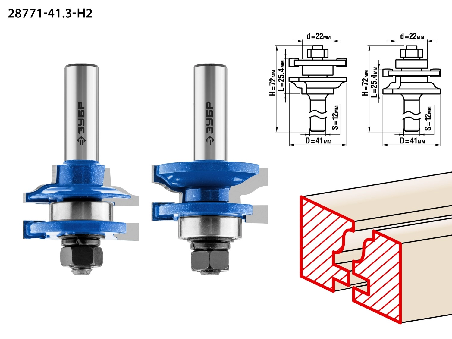 ПроизводителиНабор фрез рамочных №1, D= 41мм, рабочая длина-25,4мм, хв.-12мм, d-22мм, ЗУБР Профессионал
