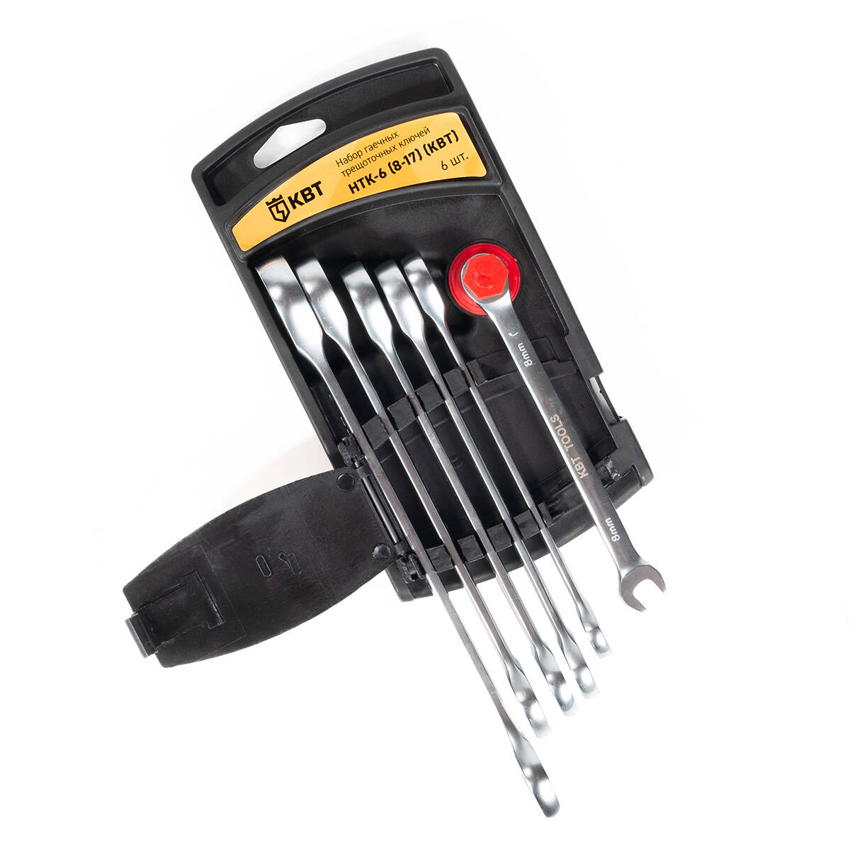 ПроизводителиНабор гаечных комбинированных трещоточных ключей НТК-6 (8-17) серия КВТ-PROFESSIONAL (91948) КВТ