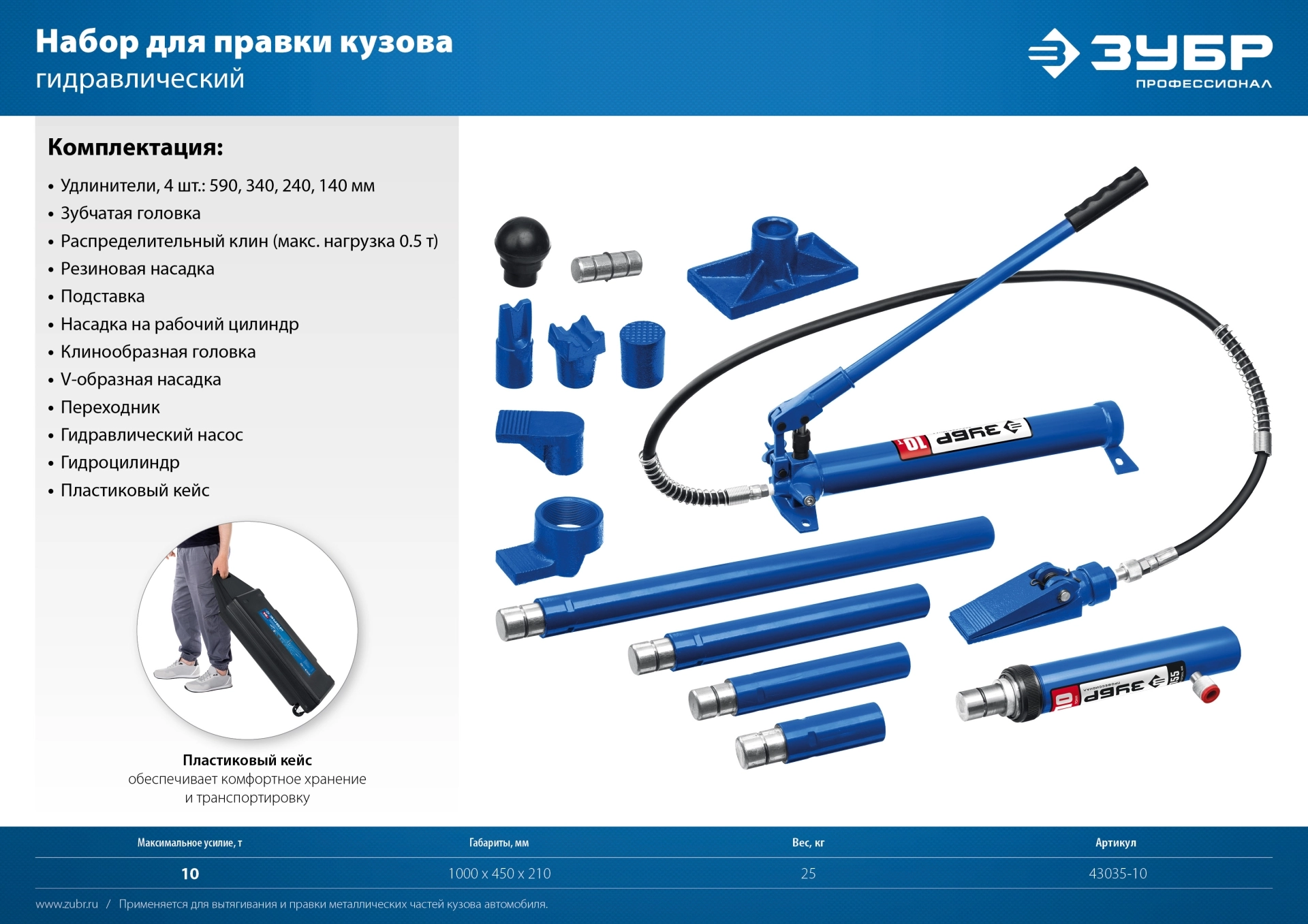 ПроизводителиНабор гидравлический, портативный для правки кузова, 10т (43035-10_z01) ЗУБР