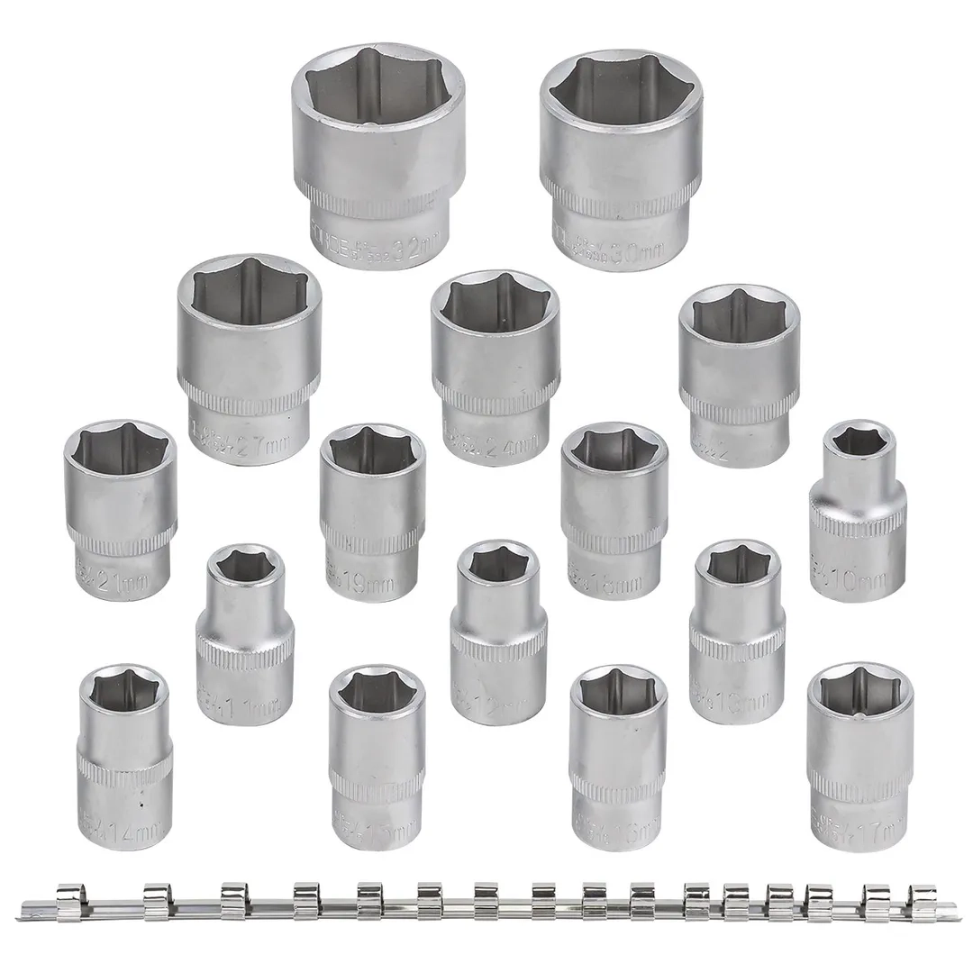 Набор из 16 торцевых шестигарнных головок на планке - это незаменимый набор инструментов для выполнения различных ремонтных, слесарных и монтажных работ. В комплекте имеются головки различных размеров, что позволяет легко и быстро выполнять разные задачи. Головки изготовлены из хромванадиевой стали Cr-V, что обеспечивает их высокую прочность и надёжность. Комплектация: Головки шестигранные посадочный квадрат 1/2" длина 38мм: 10-11-12-13-14-15-16-17-18-19-21-22-24-27-30-32мм; Планка-держатель для головок.Производитель: Рок Форс, Лтд.