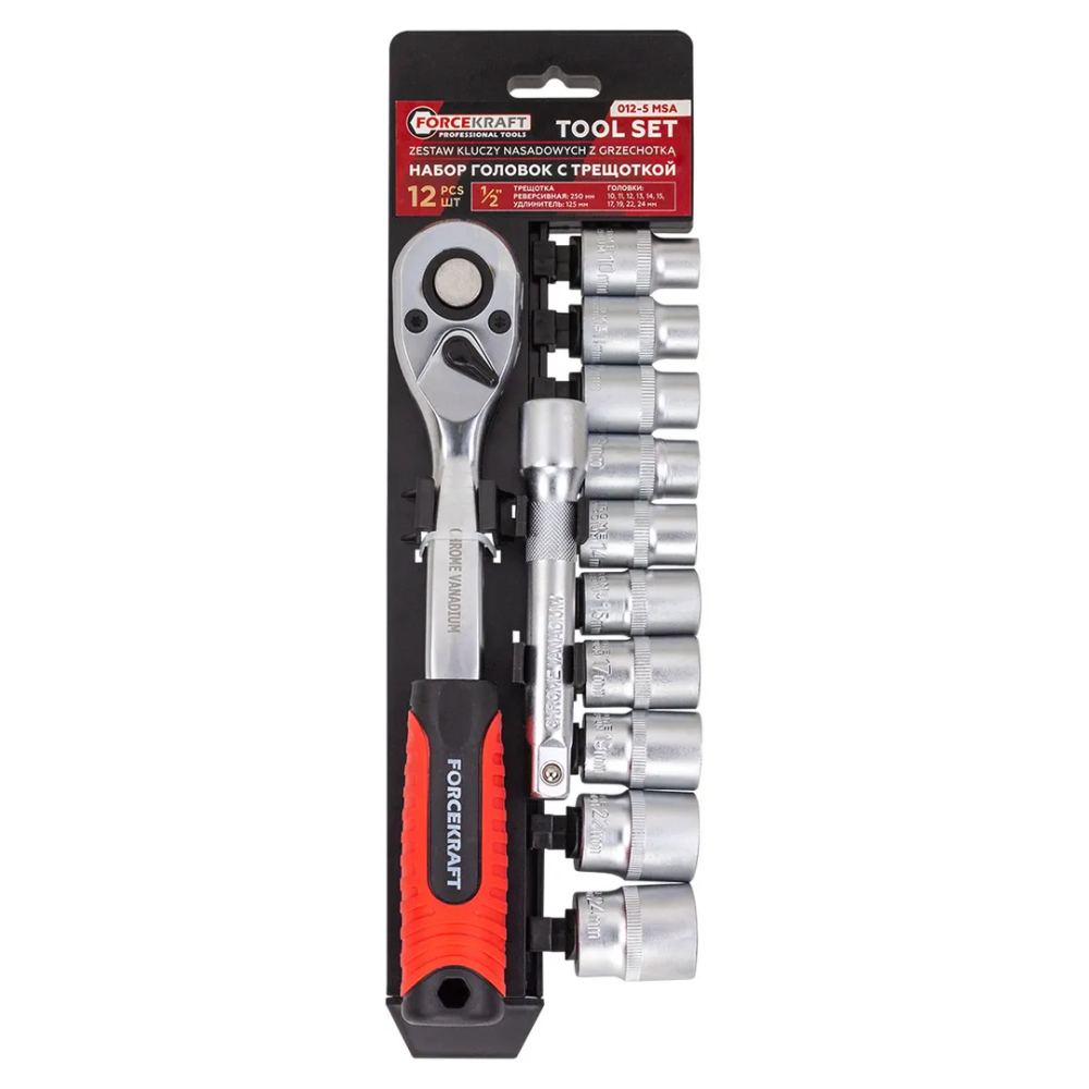 ПроизводителиНабор головок 1/2", 12пр., (6гр.)(10-24мм)(FK-012-5 MSA) FORCEKRAFT