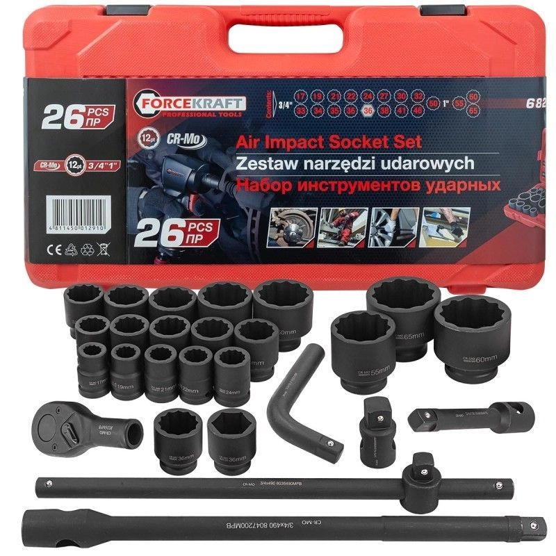 ПроизводителиНабор головок 1", 26пр., (12гр.)(FK-68262-9) FORCEKRAFT