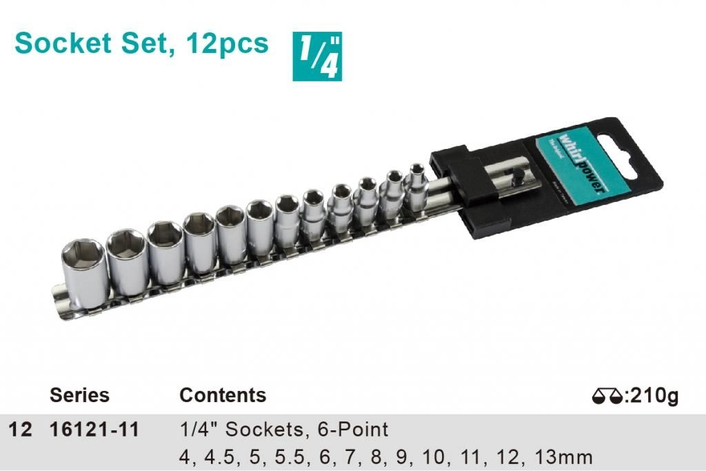 ПроизводителиНабор головок 1/4" 4-13мм, 12пр., на подвесе (1612-2612S) WHIRLPOWER
