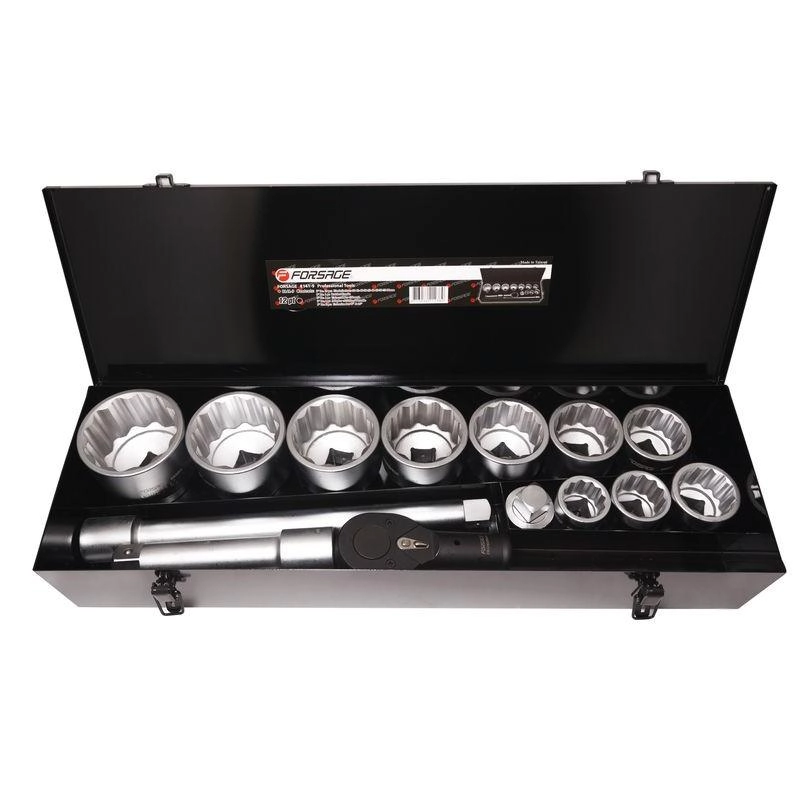 ПроизводителиНабор головок с трещоткой и удлинителями 1" 36-80мм, 15пр., в мет.кейсе (F-8141-9) Forsage