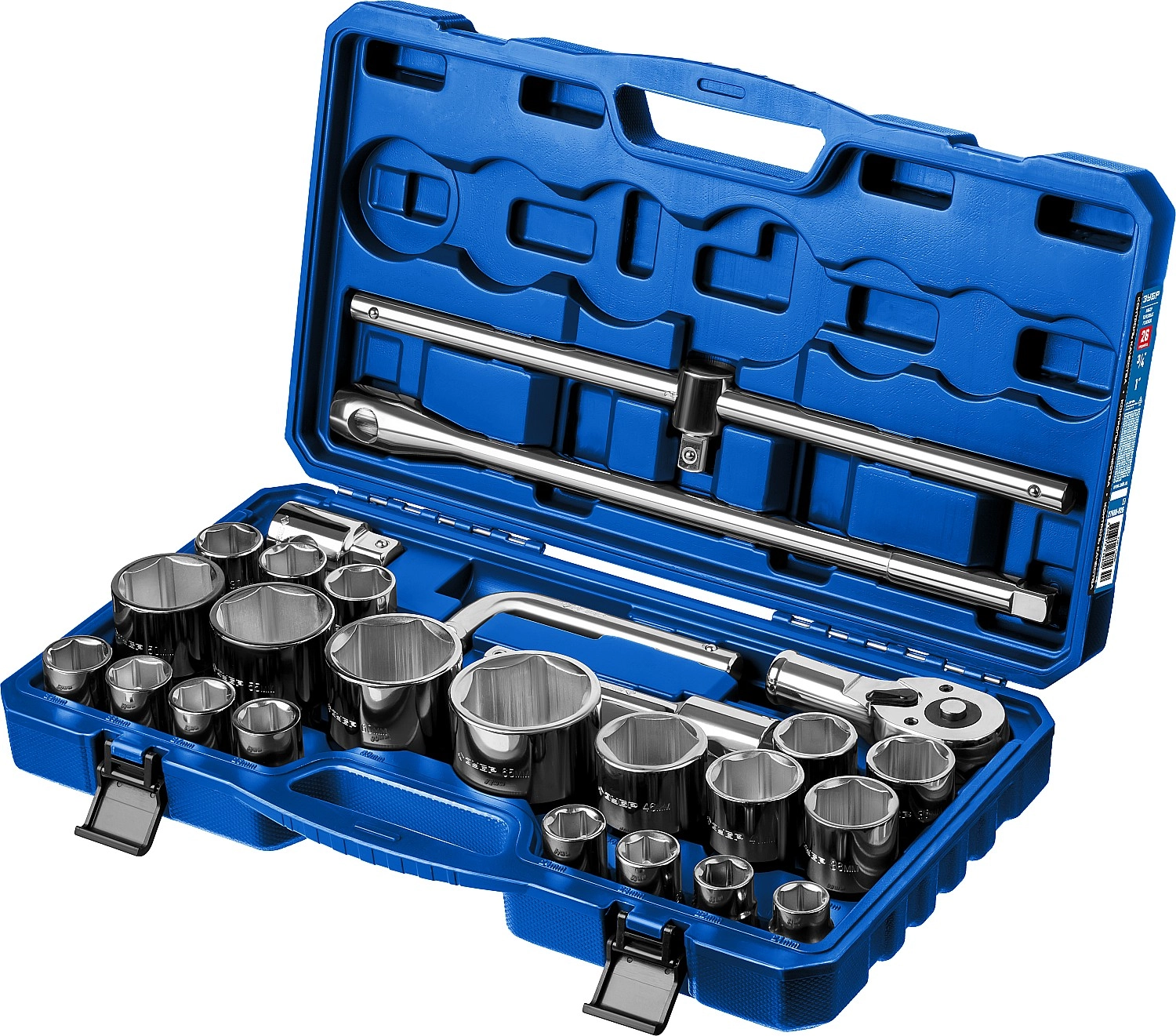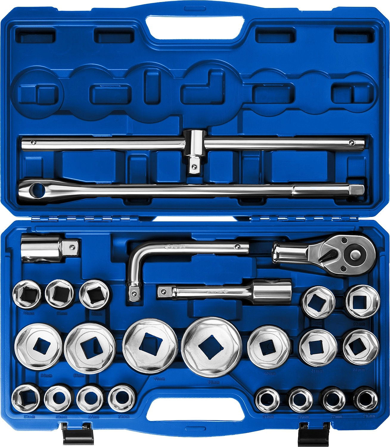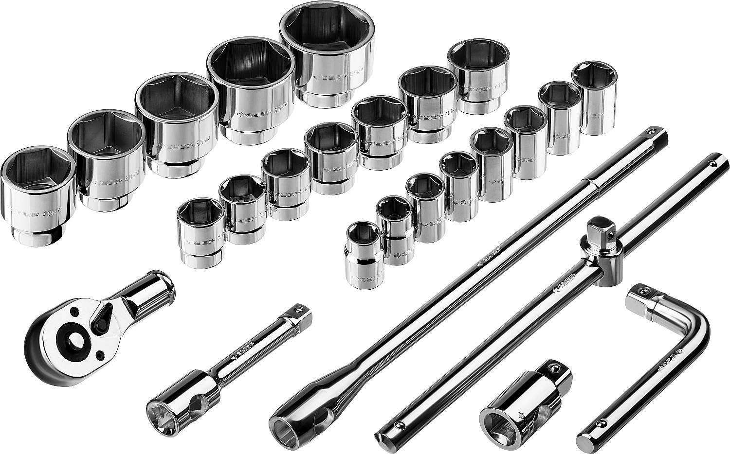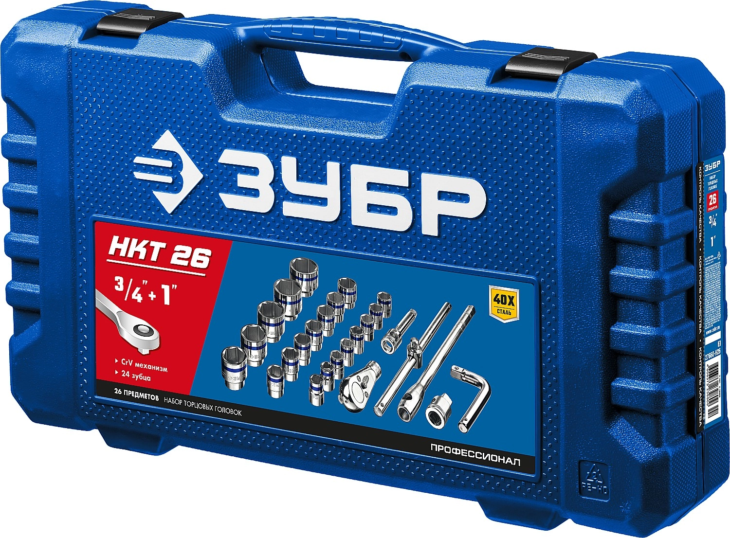 ПроизводителиНабор головок с трещоткой и удлинителями 3/4", 1" 21-50мм, 26пр. "НКТ-26" (27660-H26_z02) ЗУБР