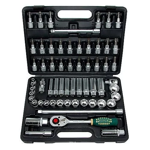 ПроизводителиНабор головок с трещоткой и удлинителями 3/8", 12гр. (61пр.) CrV (3611-9) FORCE