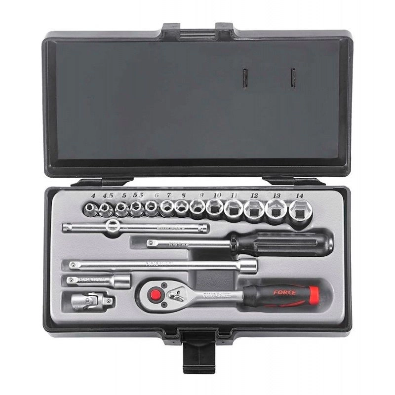 ПроизводителиНабор головок с трещоткой, удлинит., воротками 1/4", 4-14мм 19предм. (2203-5) FORCE