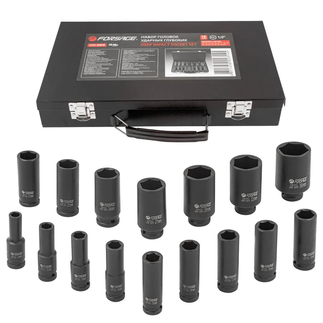 ПроизводителиНабор головок ударн. 1/2" 10-36мм 6гр. 16пр. (RF-4167-5MPB) Forsage