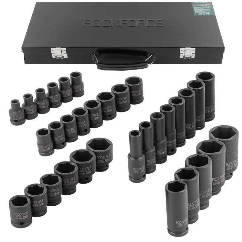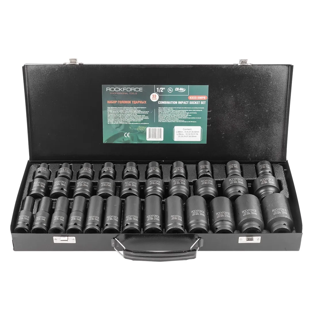 ПроизводителиНабор головок ударн. 1/2" 8-32мм, коротк. и глуб., 6гр., 33пр. (RF-4333-5MPB) Rock FORCE