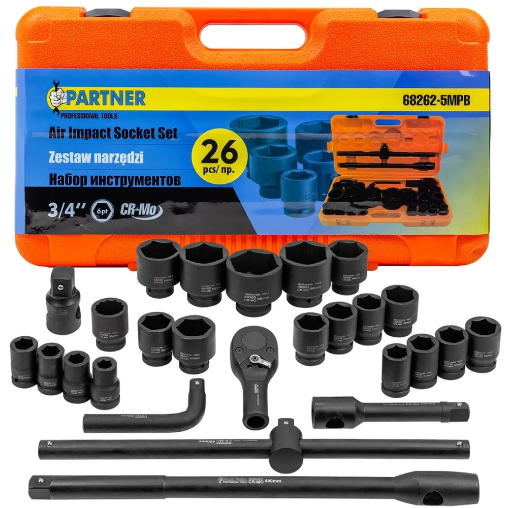 ПроизводителиНабор головок ударн. 1", 26пр., (6гр.)(PA-68262-5MPB) Partner