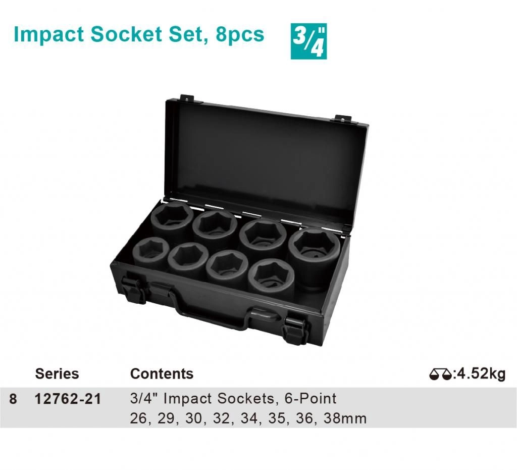 - Головки 3/4", ударные, 6-гранные: 26, 29, 30, 32, 34, 35, 36, 38мм