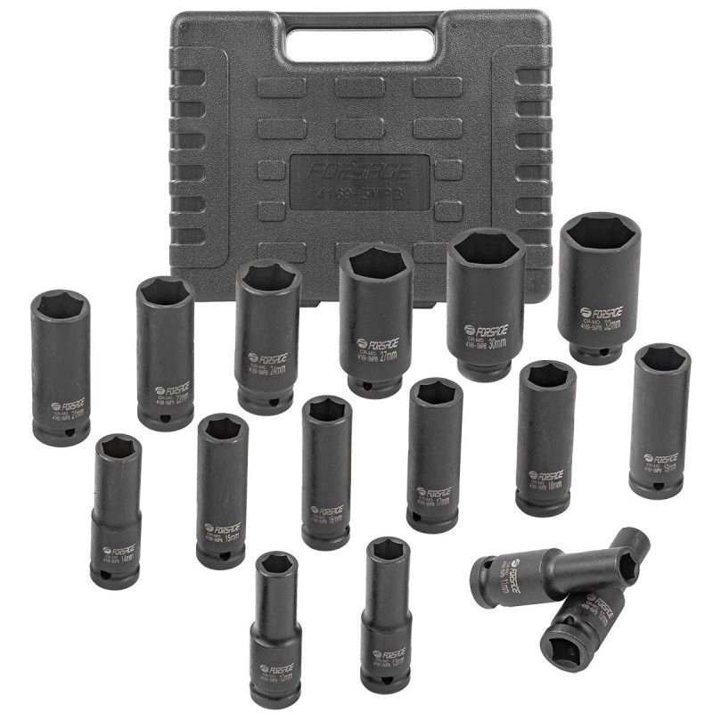ПроизводителиНабор головок ударн. глубоких 1/2" 10-32мм, 6гр., 16пр. (F-4169-5MPB) Forsage