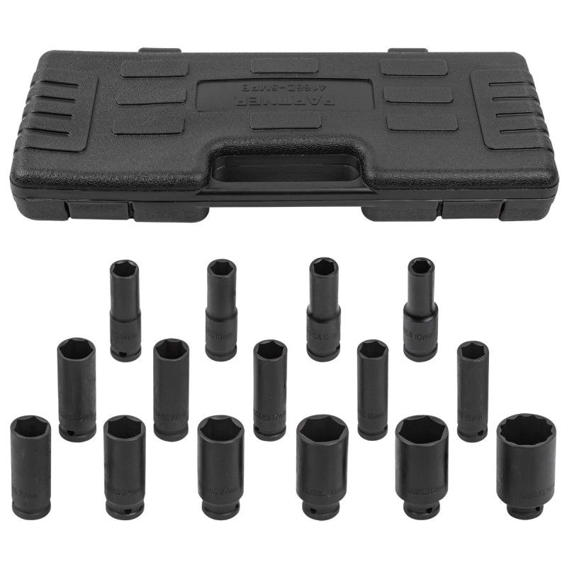 ПроизводителиНабор головок ударн. глубоких 1/2" 10-36мм, 6гр., (36мм-12гр.) 15пр. (PA-4166D-5MPB) Partner