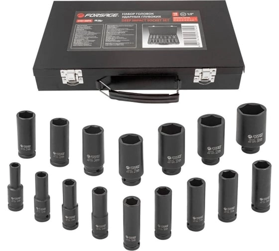 ПроизводителиНабор головок ударных глубоких 1" 14пр. 12гр. (22-60мм)(F-8152-9MPB) Forsage