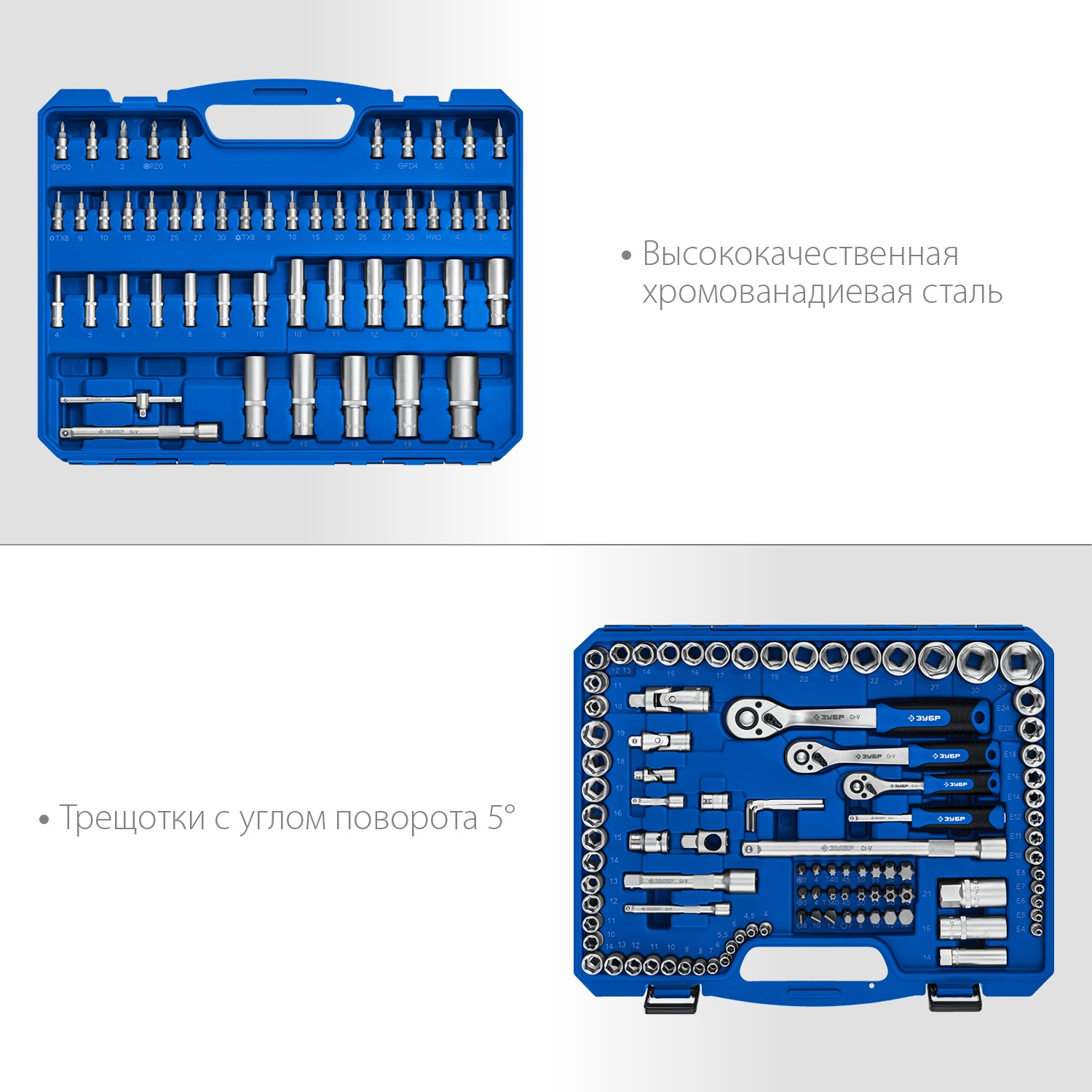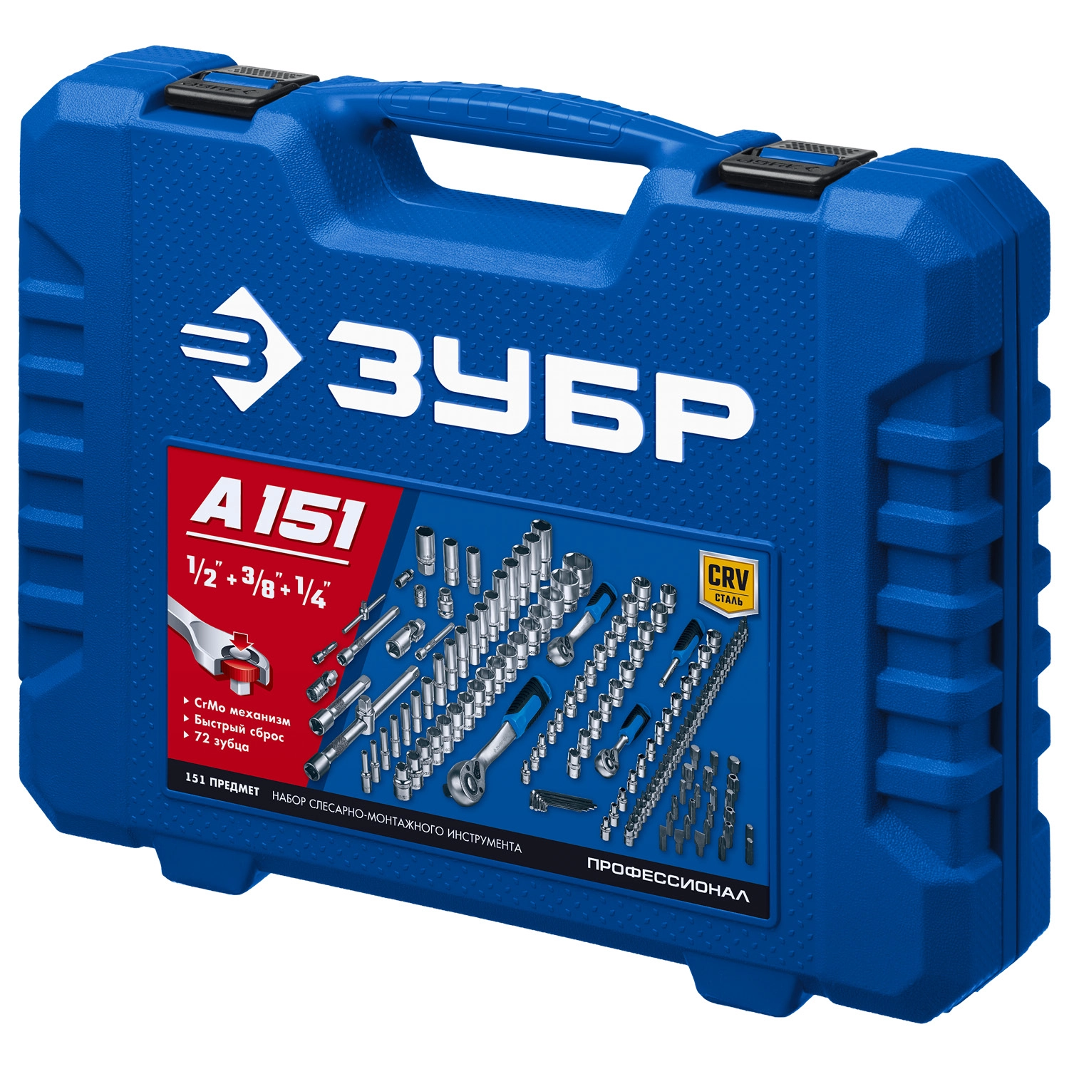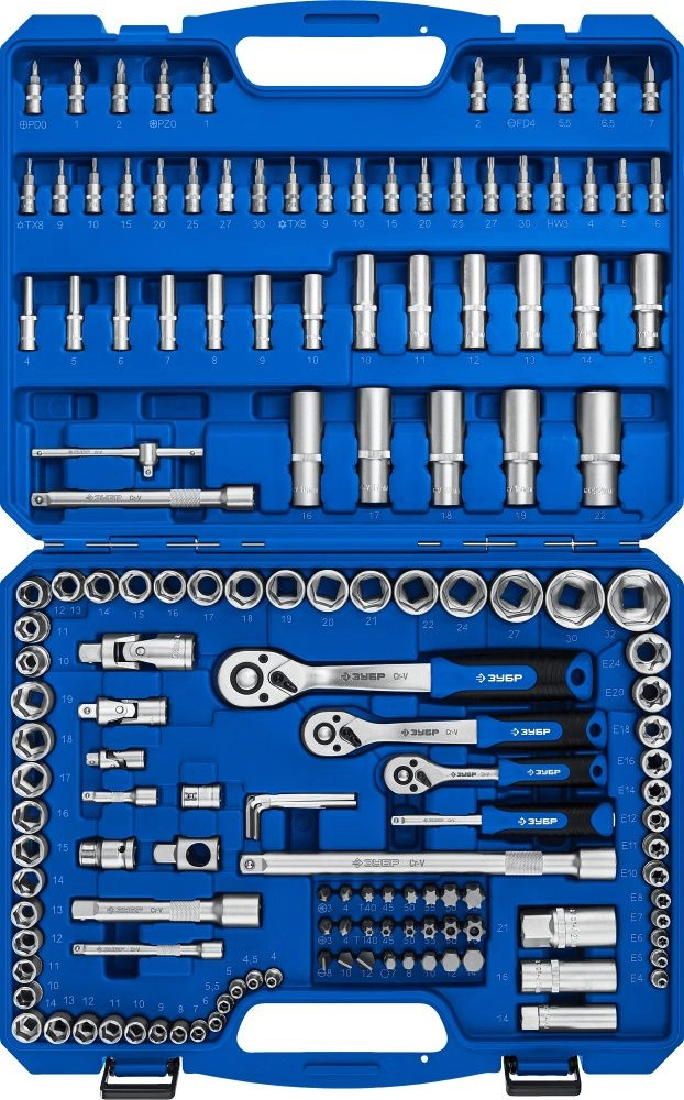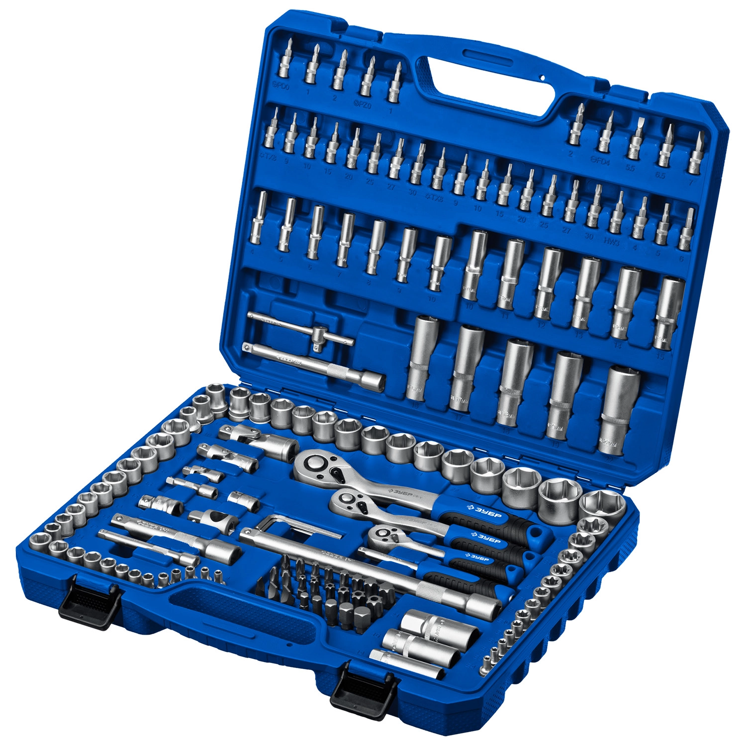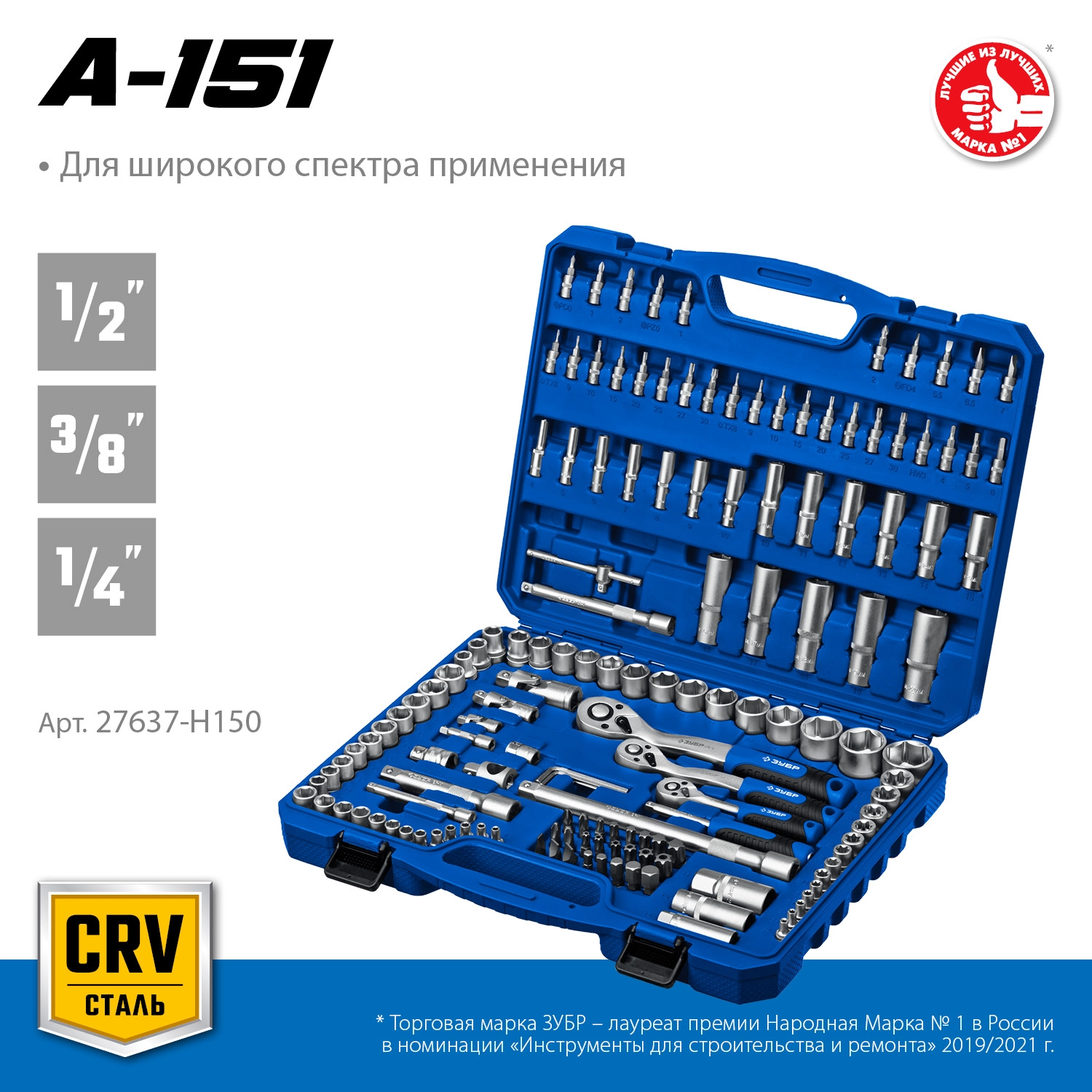 ПроизводителиНабор инструмента автомобильного (1/2", 1/4", 3/8") 150пр. (27637-H150_z01) ЗУБР