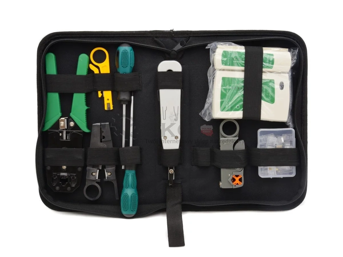 Набор сетевых инструментов RJ45 разработан как для профессионалов, так и для домашних пользователей. Упакован в практичный чехол из материала.