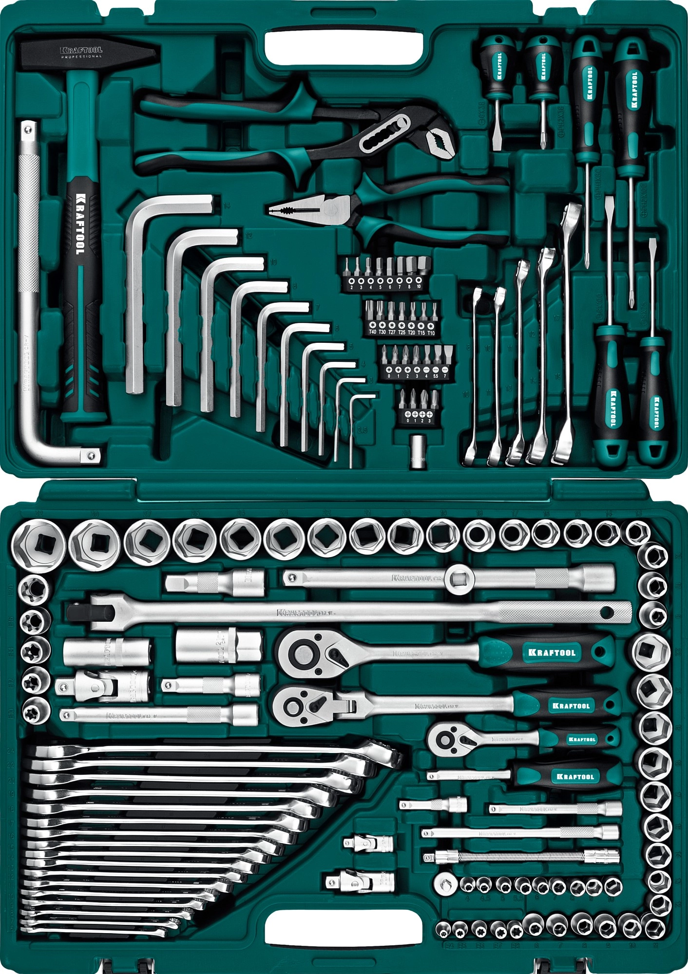 Универсальный набор инструмента KRAFTOOL 27889-H142, предназначен для монтажа и демонтажа резьбовых соединений при ремонте автомобилей и других изделий. Хромированное покрытие для защиты от коррозии. Многоступенчатая закалка для придания баланса прочности и твердости. Обладает высоким ресурсом даже при интенсивных работах.