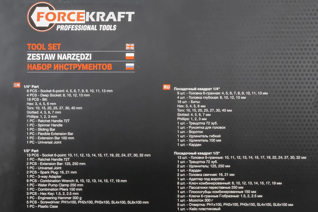 ПроизводителиНабор инструмента слесарного (1/2", 1/4") 77пр. (FK-4772-5) FORCEKRAFT
