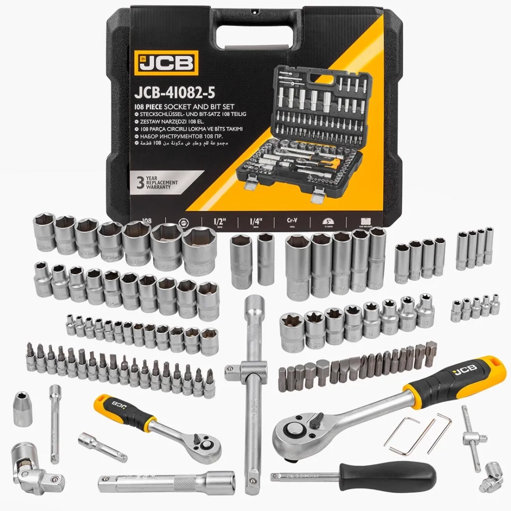 Набор инструментов от бренда JCB из 108 предметов в кейсе функциональный комплект инструментов премиум класса, который обязательно порадует любого автолюбителя.