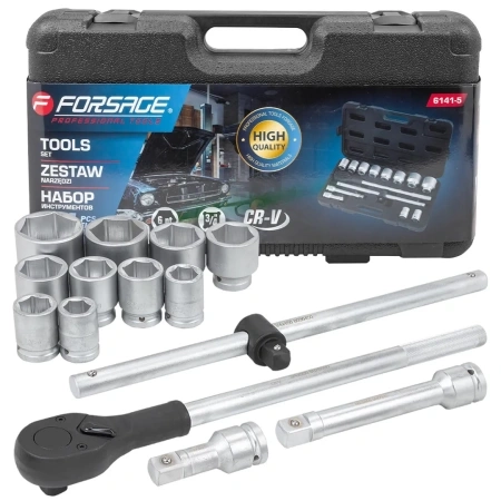 ПроизводителиНабор инструментов 14пр. 3/4" (6гр.)(22,24,27,30,32,36,38,41,46,50мм)(F-6141-5) Forsage