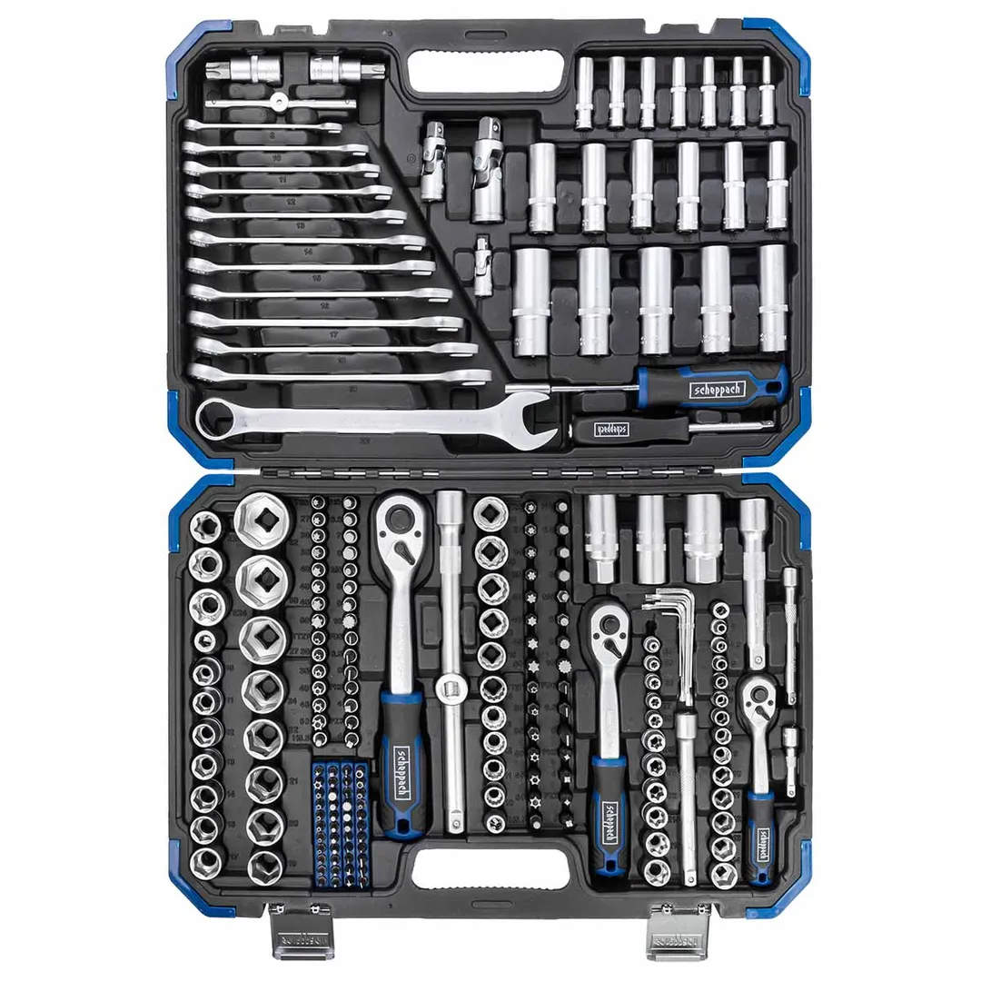 ПроизводителиНабор инструментов 216+2пр. 1/4", 3/8", 1/2" (6гр.)(4-32мм)(Sch-38841+2) Scheppach