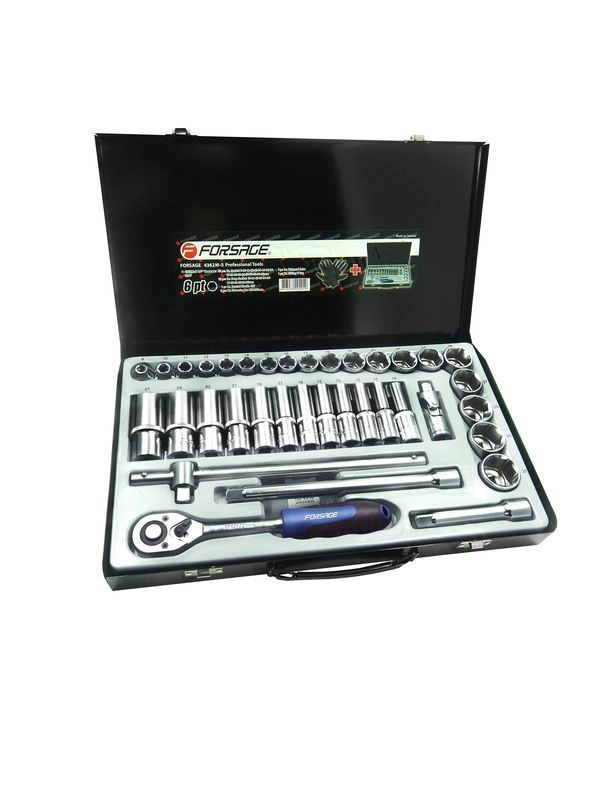 ПроизводителиНабор инструментов 36пр. 1/2" (6гр.)(8-32мм, Cr-V), в металлическом кейсе(F-4362M) Forsage