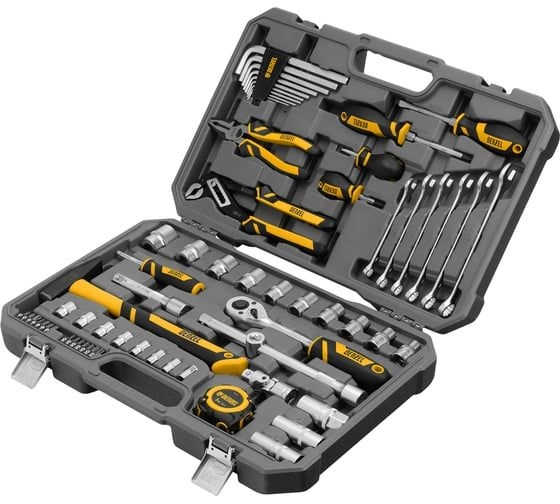 ПроизводителиНабор инструментов 64пр. 1/4", 1/2" (6гр.) (8-27мм) (15801) DENZEL