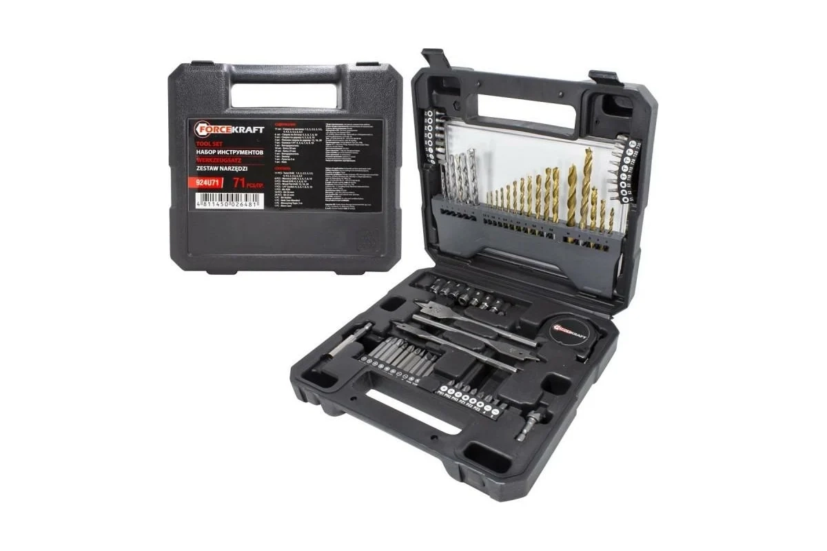ПроизводителиНабор инструментов 71пр. (головки:4-10мм, биты, сверла),в кейсе (FK-924U71) FORCEKRAFT