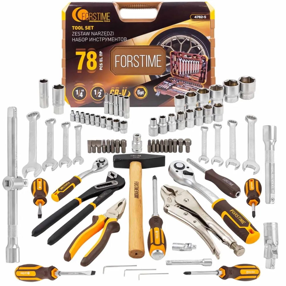 ПроизводителиНабор инструментов 78пр. 1/4", 1/2" (6гр.)(FT-4782-5) FORSTIME