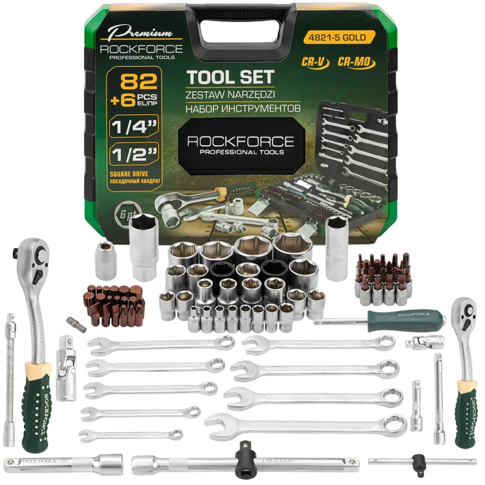 ПроизводителиНабор инструментов 82+6пр. 1/4", 1/2" (6гр.)(RF-4821-5 GOLD) RockFORCE