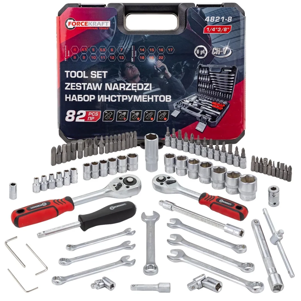 ПроизводителиНабор инструментов 82пр. 1/4", 3/8" (6гр.)(FK-4821-8) FORCEKRAFT