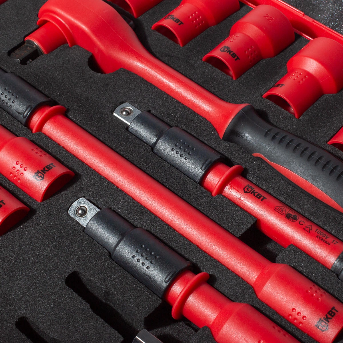Для работы под напряжением до 1000 В Присоединительный квадрат 1/2 дюйма Состав набора: диэлектр. трещоточный ключ 250 мм диэлектр. Т-образная рукоятка 200 мм диэлектр. удлинитель 125 мм диэлектр. удлинитель 250 мм диэлектр. шестигранная головка 1/2’’ – 10 мм диэлектр. шестигранная головка 1/2’’ – 11 мм диэлектр. шестигранная головка 1/2’’ – 12 мм диэлектр. шестигранная головка 1/2’’ – 13 мм диэлектр. шестигранная головка 1/2’’ – 14 мм диэлектр. шестигранная головка 1/2’’ – 17 мм диэлектр. шестигранная головка 1/2’’ – 19 мм диэлектр. шестигранная головка 1/2’’ – 22 мм диэлектр. шестигранная головка 1/2’’ – 24 мм диэлектр. шестигранная головка 1/2’’ – 27 мм диэлектр. шестигранная головка 1/2’’ – 30 мм диэлектр. шестигранный ключ 4 мм диэлектр. шестигранный ключ 5 мм диэлектр. шестигранный ключ 6 мм диэлектр. шестигранный ключ 8 мм диэлектр. шестигранный ключ 10 мм