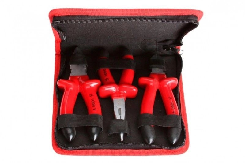 Для работы под напряжением до 1000 В Состав набора: диэлектрические бокорезы 160 мм диэлектрические пассатижи 160 мм диэлектрические длинногубцы 160 мм
