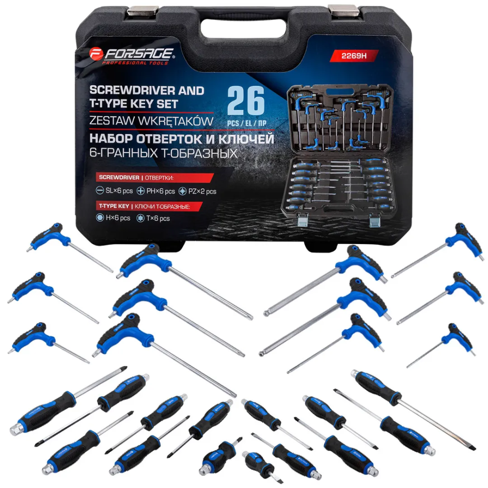ПроизводителиНабор инструментов, отвертки с ключами Т-образными 6-гранными, набор 26пр.(F-2269H) Forsage