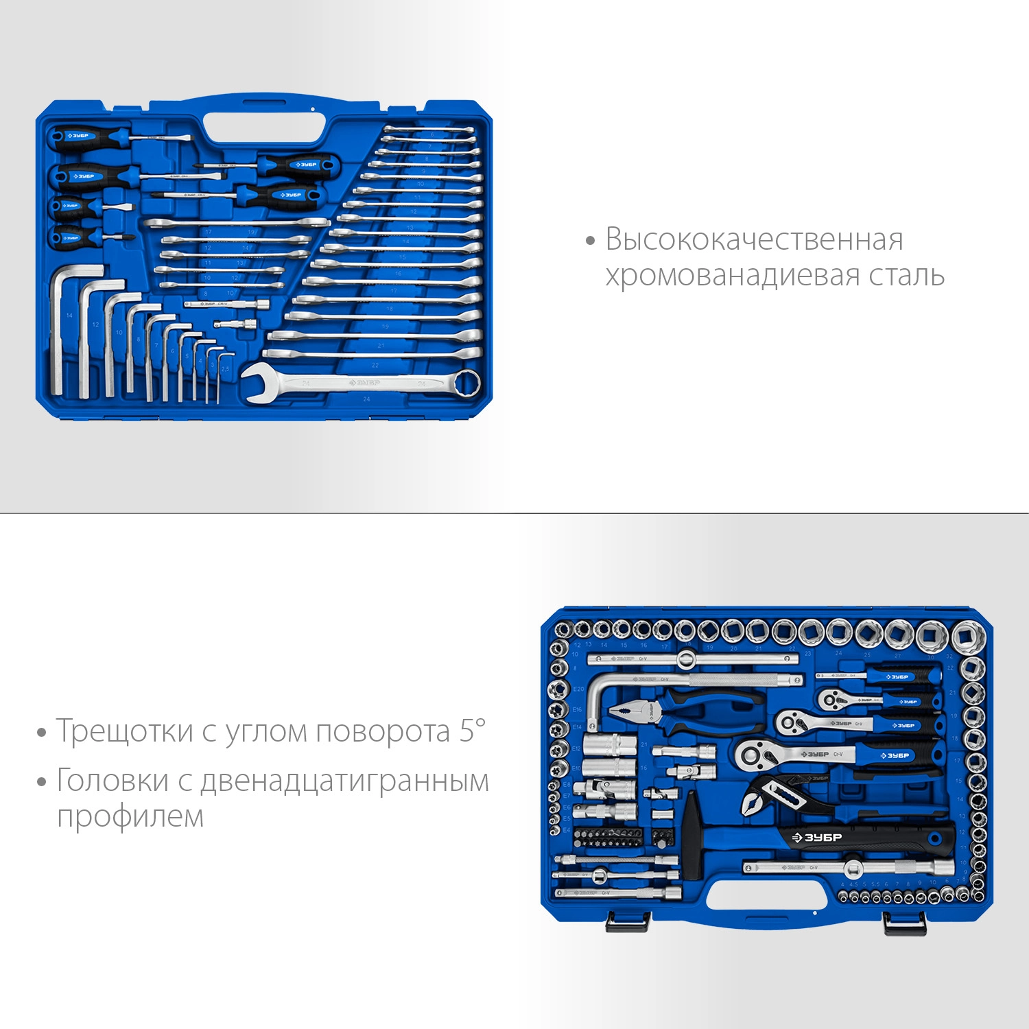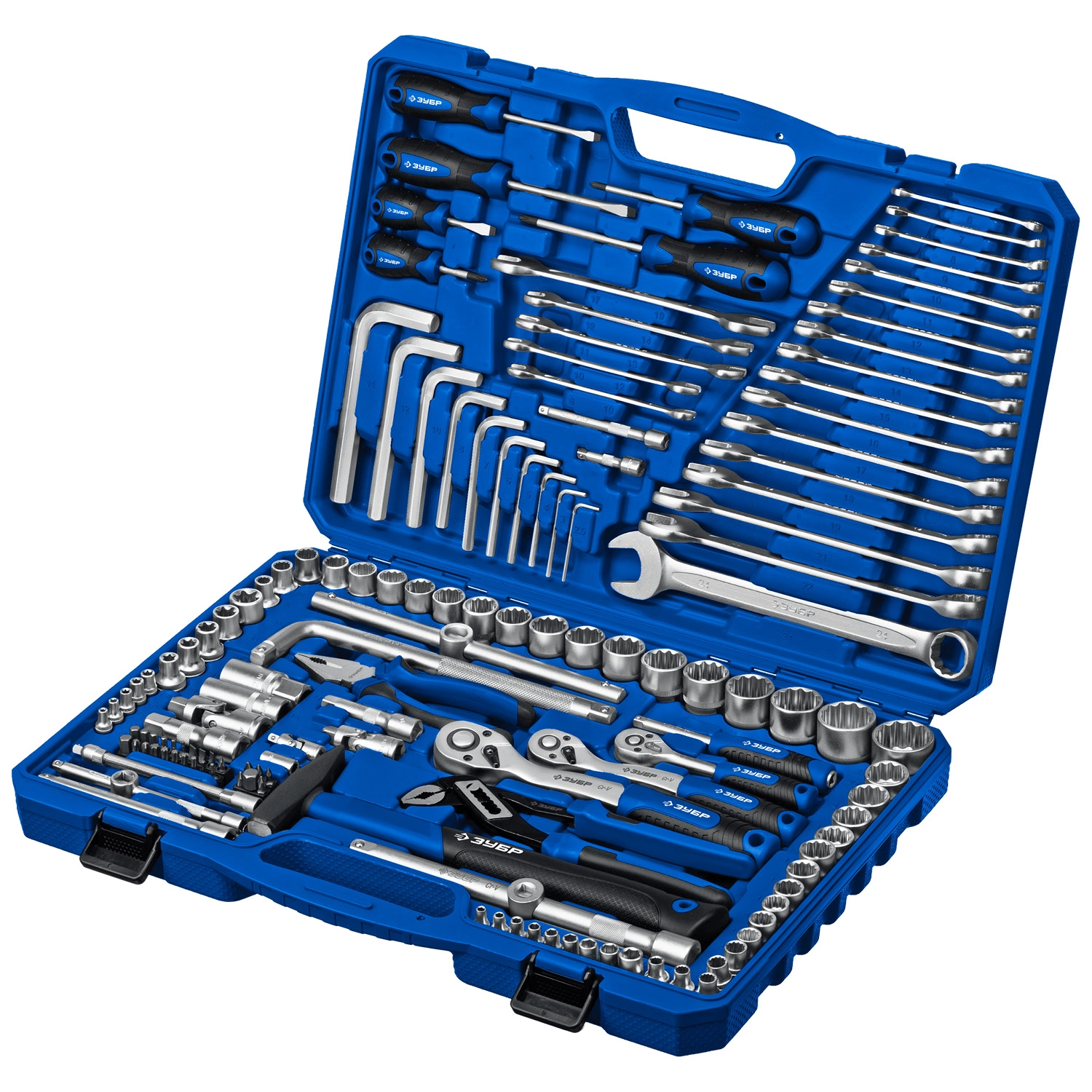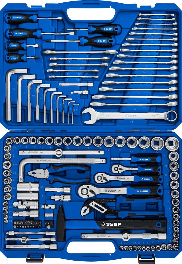 ПроизводителиНабор инструментов слесарных (1/2", 3/8", 1/4"), 142пр. "Универсал-142" (27670-H142) ЗУБР