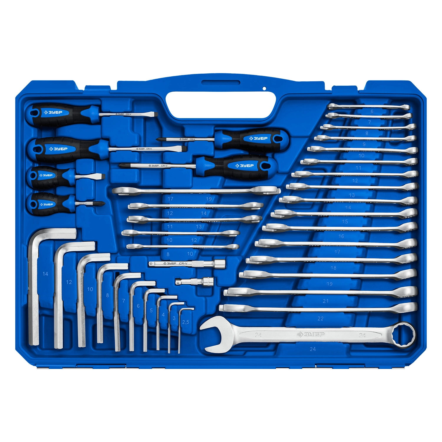 Универсальный набор инструментов ЗУБР 27670-H142, предназначен для проведения слесарных, монтажных и ремонтных работ. Хромированное покрытие для защиты от коррозии. Многоступенчатая закалка для придания баланса прочности и твердости. Высококачественная Cr-V сталь. Профиль FLANK для быстрого и точного захвата крепежаПроизводитель: Крафтул И/Е Гмбх, Альтер Поствег Штр., Лоенинген, Германия