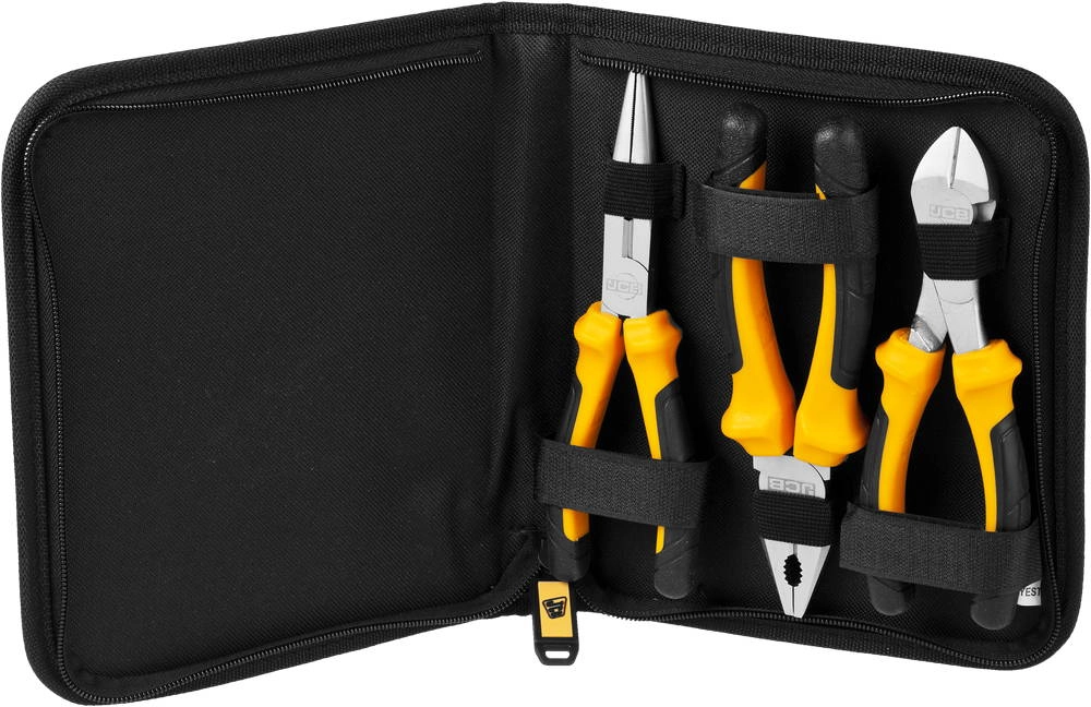 ПроизводителиНабор JCB: Губцевый инструмент, хромированное покрытие, двухкомпонентные рукоятки, CrV cталь, 3 пред