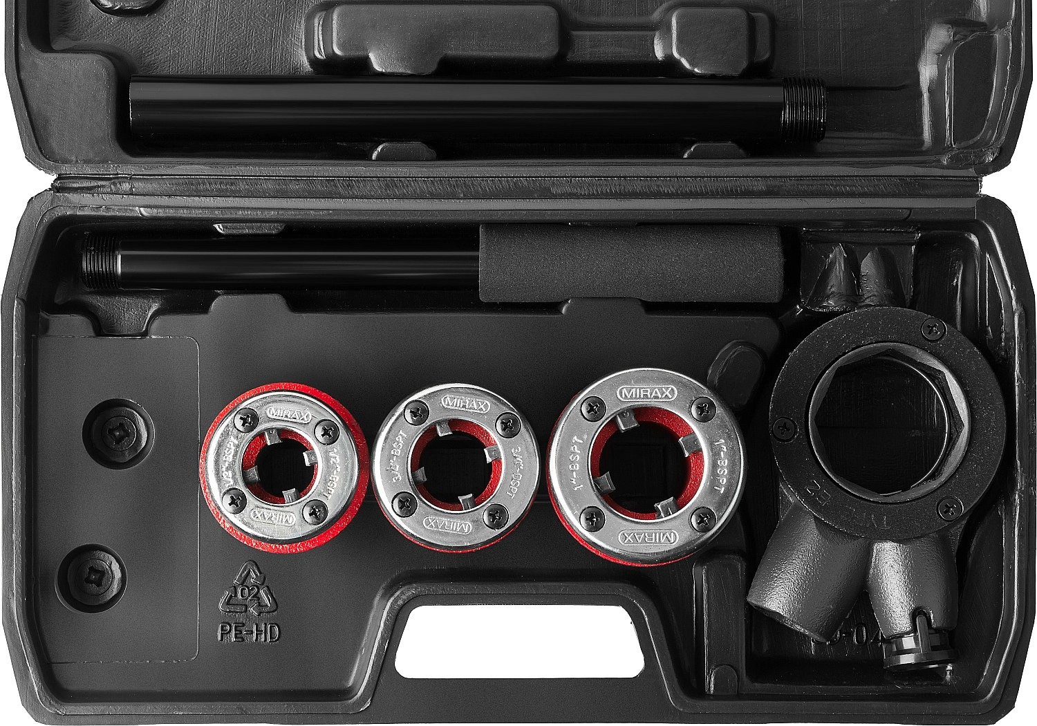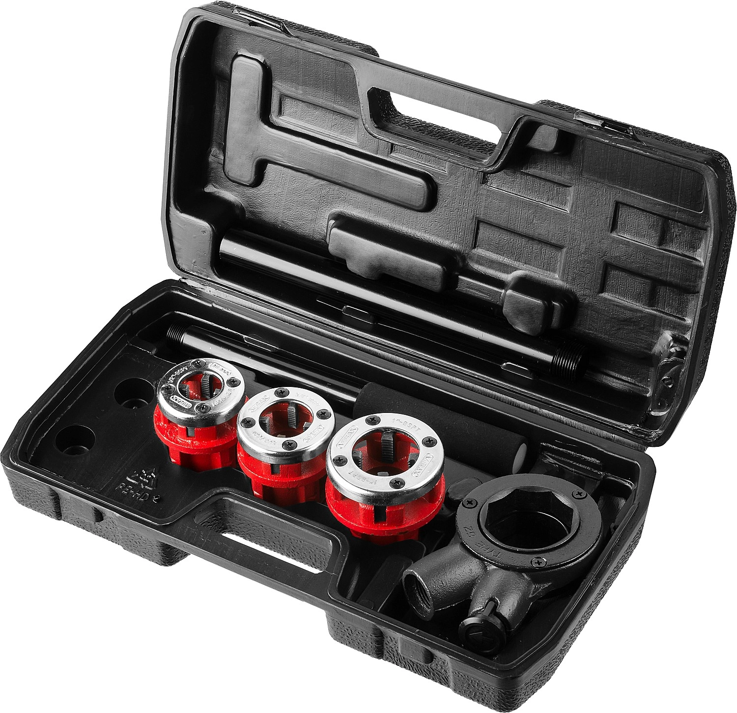 - Набор включает в себя популярные размеры клуппов для нарезания резьбы на металлических трубах