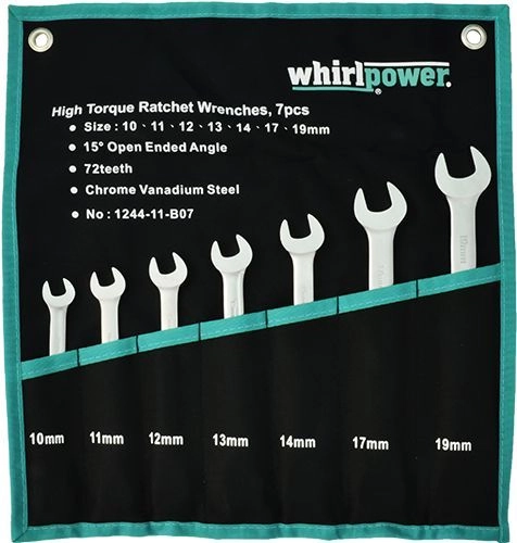 ПроизводителиНабор ключей комбинир. 10-19мм, с трещоткой, 7пр. (1244-11-B07) WHIRLPOWER