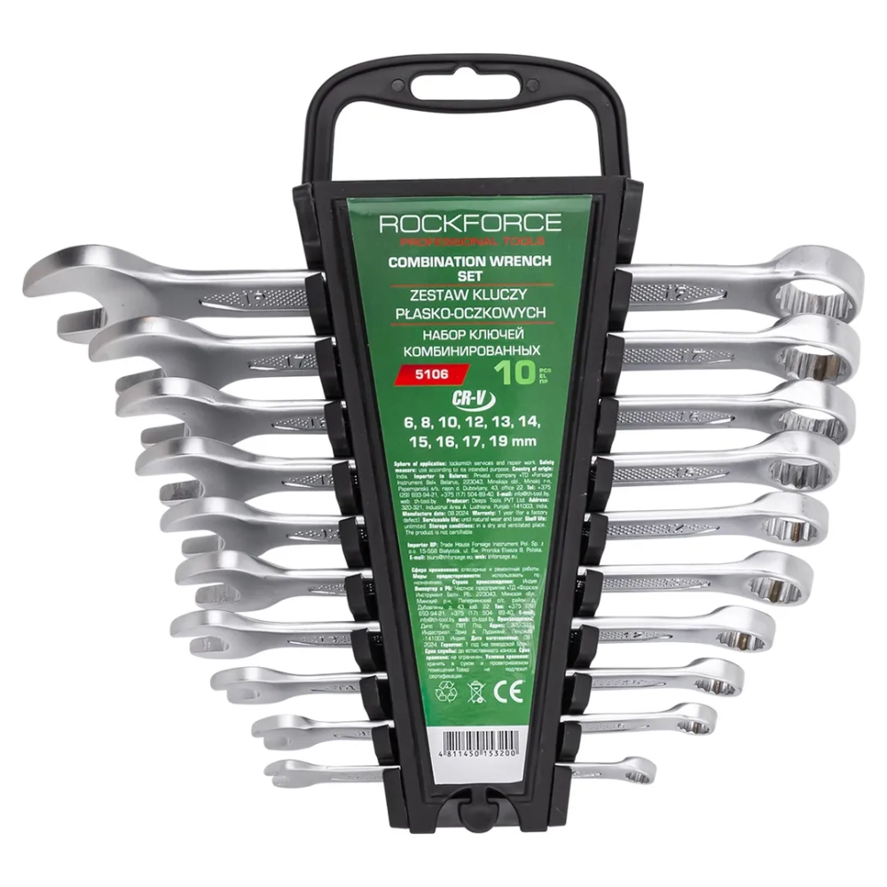 ПроизводителиНабор ключей комбинированных 10пр. (6, 8, 10, 12-17, 19мм)(RF-5106) RockFORCE