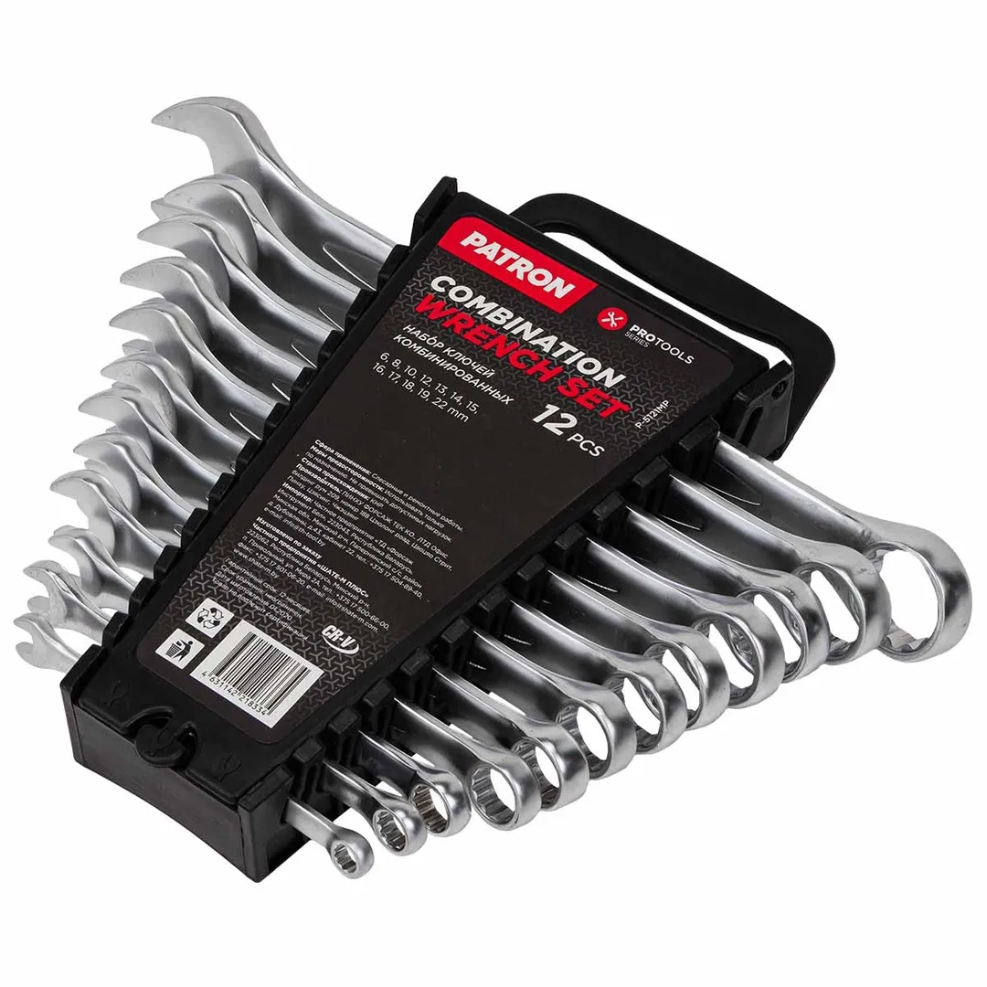 ПроизводителиНабор ключей комбинированных 12 пр (6,8,10,12,13,14,15,16,17,18,19,22мм)(P-5121MP) PATRON