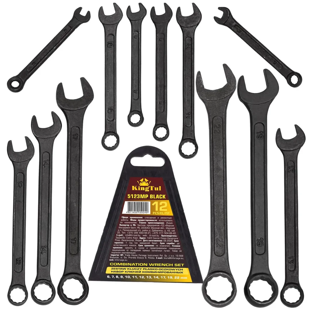 ПроизводителиНабор ключей комбинированных 12пр. (6-14, 17, 19, 22мм)(KT-5123MP BLACK) KINGTUL