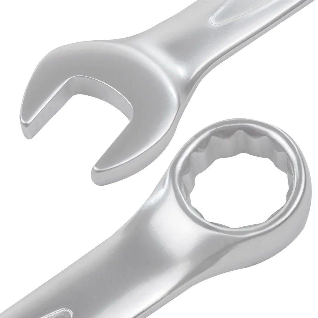 Ключи комбинированные – универсальные гаечные ключи, совмещающие в себе функционал и преимущества рожковых и накидных ключей. Зевы комбинированных ключей имеют одинаковые размеры. Ключи гаечные с открытым и кольцевым зевами предназначены для монтажа либо демонтажа резьбовых соединений. Набор изготовлен из высококачественной стали Cr-V.