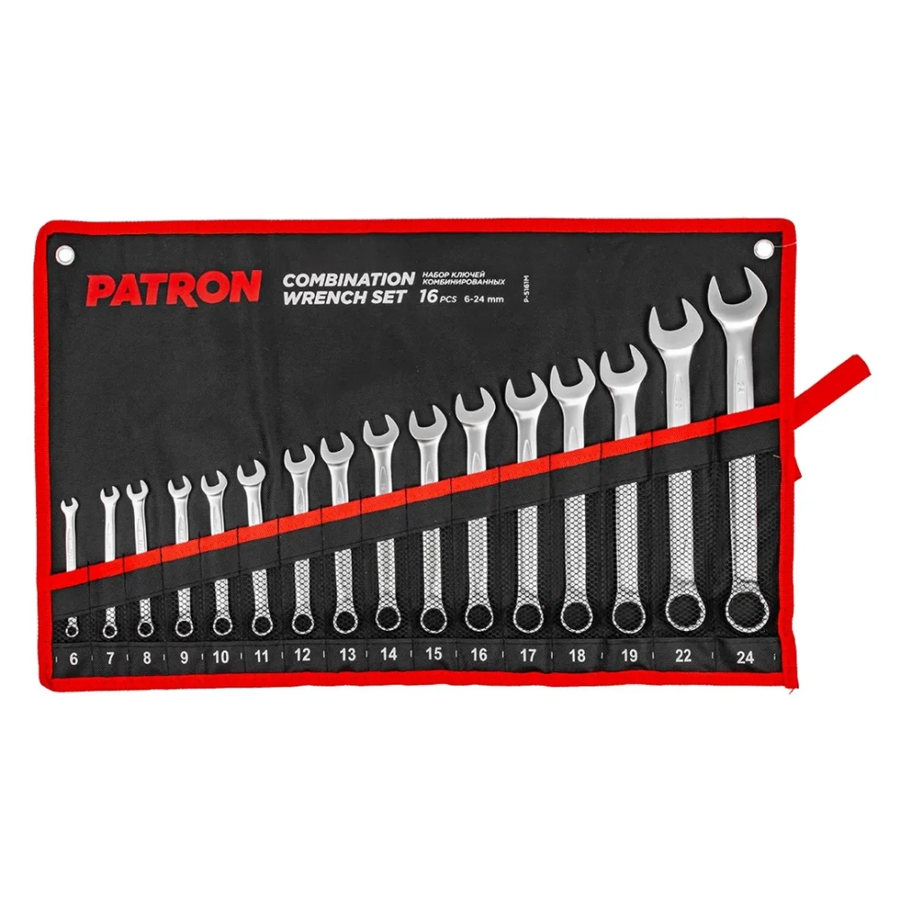 ПроизводителиНабор ключей комбинированных 16 пр. (6,7,8,9,10,11,12,13,14,15,16,17,18,19,22,24 мм)(P-5161M) PATRON