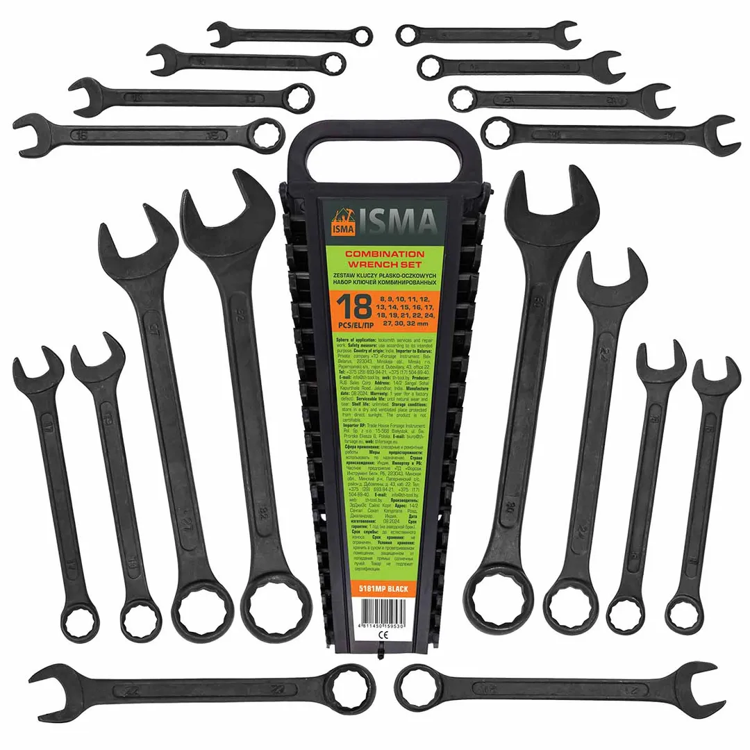 ПроизводителиНабор ключей комбинированных 18пр. (8-19, 21, 22, 24, 27, 30, 32мм)(ISMA-5181MP BLACK) ISMA
